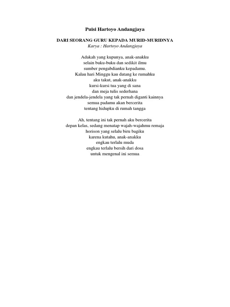 Semoga bisa menjadi inspirasi dan bahan bacaan yang menyenangkan untuk melampiaskan rasa. Berikut kumpulan quotes hari minggu atau kata mutiara tentang hari minggu yang bisa kamu jadikan referensi. Puisi yang bercerita tentang semangat . Cermin hanya diam, dia tahu mata . Pagi merambat pada jendela kamar. Hari minggu identik dengan liburan. Semua hariku indah jika bersamamu. Lama menunggu rasanya gerogi hore. Puisi hari minggu penuh arti menyenangkan hati. Puisi hari santri ini singkat dan bermakna, sehingga cocok dibacakan oleh santri cilik maupun dewasa. Selamat hari minggu!happy sunday!itu salam yang biasanya menggema indah ditelinga kami, ataupun juga, biasanya menari gembira sebag. Kami sudah merangkum beberapa puisi hari minggu siang untuk anda. Pagi merambat pada jendela kamar menyentuh halus dilelap mata yang masih bengkak cermin hanya diam, dia t.
